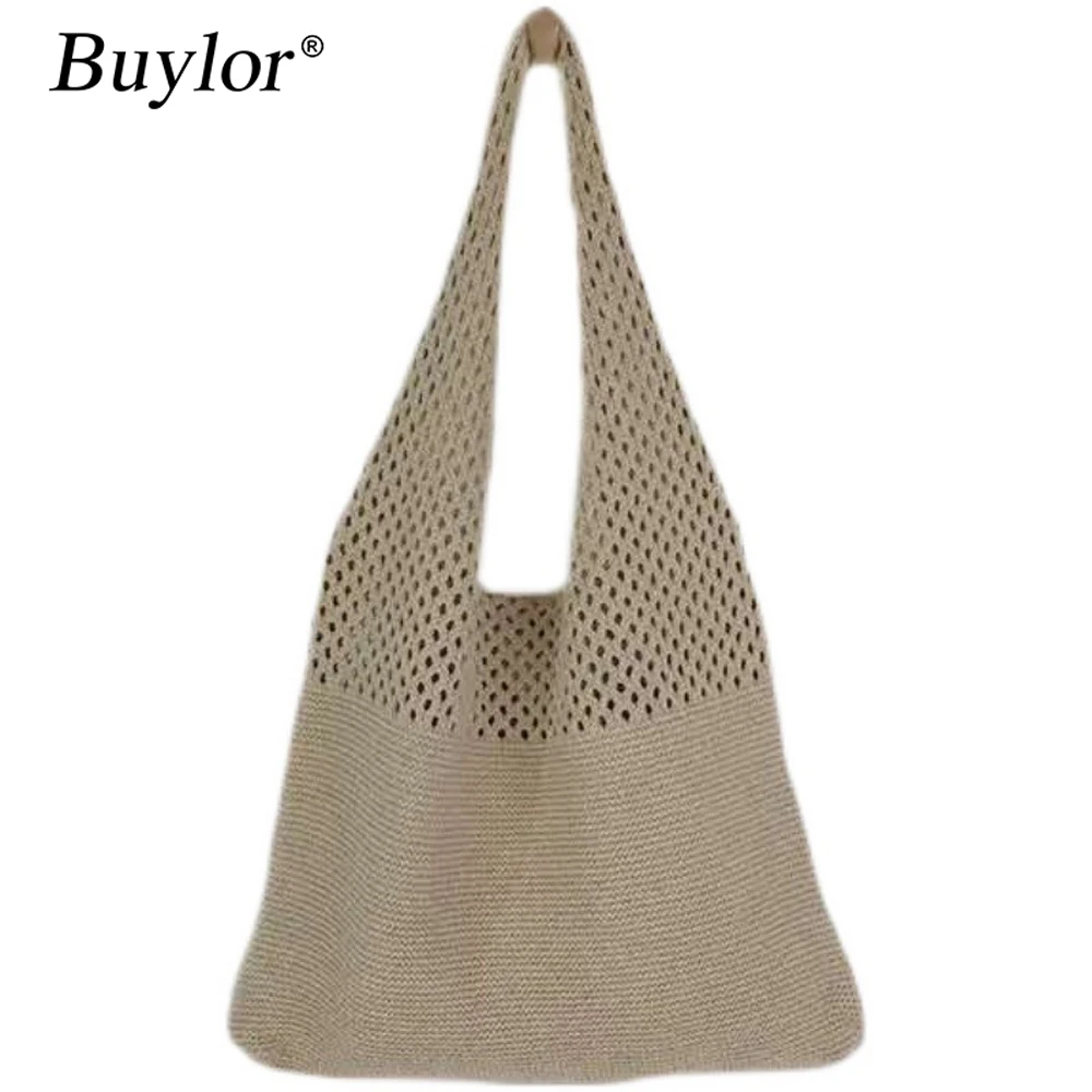 Женская сумка через плечо Buylor, простая повседневная вязаная сумка в стиле ретро, летняя пляжная сумка, жилет