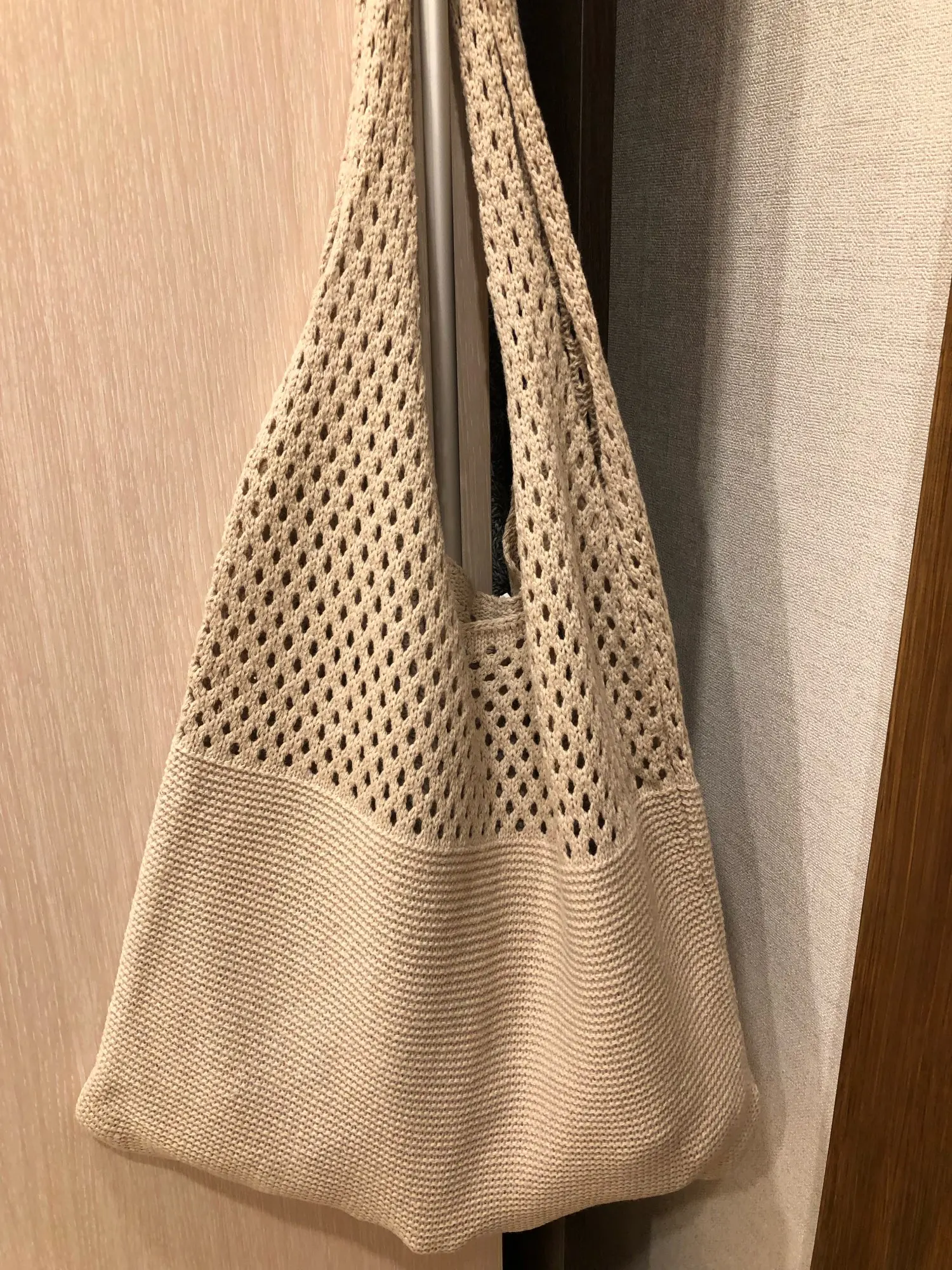 Мешок хороший, качественный, но из зимней нитки...Словно сумка зимняя. Даже чуть колется как шарф). Но всё равно пользуюсь. Нравится. Плотная.