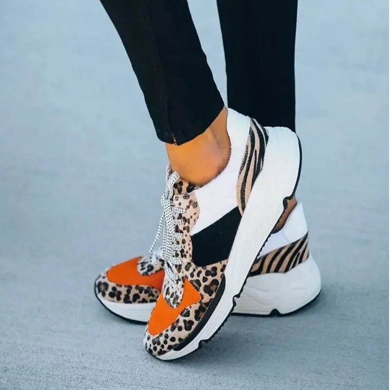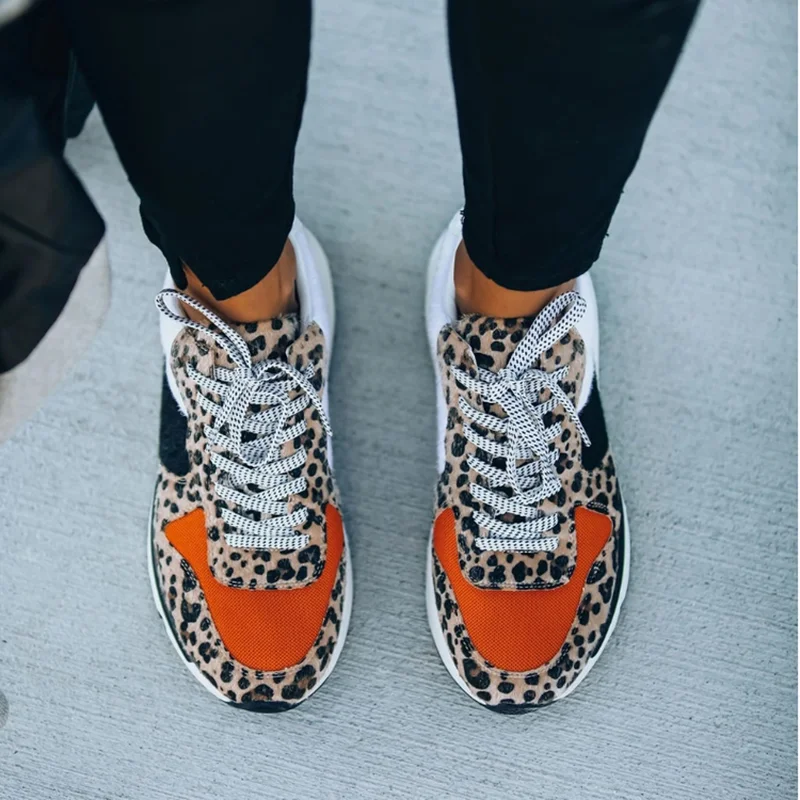 Женские дышащие кроссовки, Женская Вулканизированная обувь со шнуровкой, цвет леопард, повседневная женская обувь, женские туфли, удобные 35-43