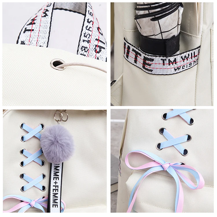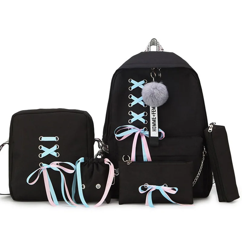 Школьный рюкзак для девочек-подростков, с лентами, 4 комплекта
