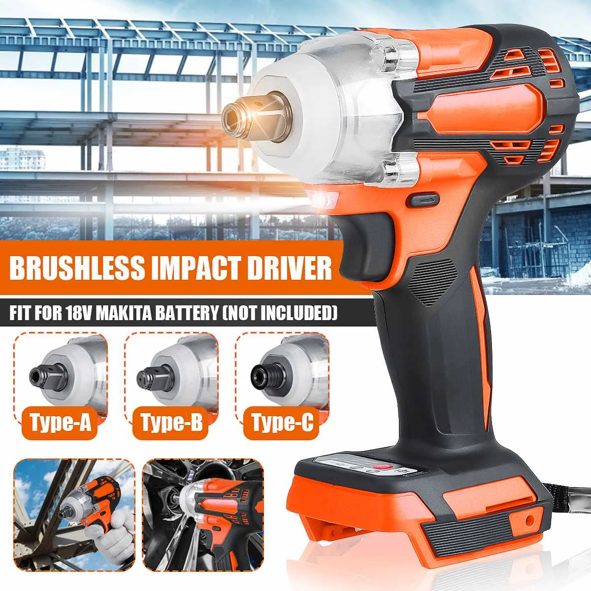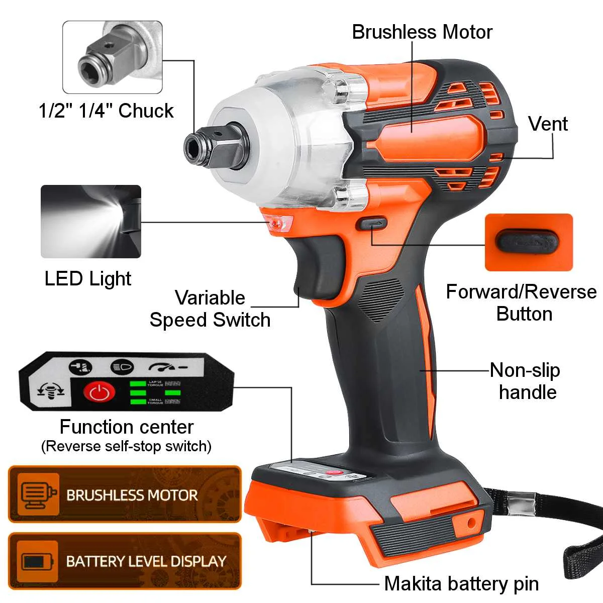 2 in1 18V 800N.m. Литий-ионный бесщеточный беспроводной электрический 1/2 "гаечный ключ 1/4" отвертка дрель Замена для батареи Makita