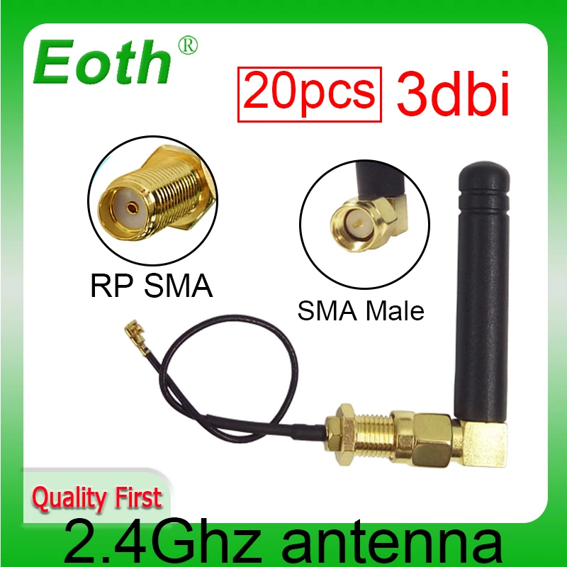 EOTH 20 шт. 2,4g антенна 3dbi sma male wlan Wi-Fi 2,4 ГГц антенна IPX ipex 1 SMA Розетка Удлинительный кабель iot модуль антенна