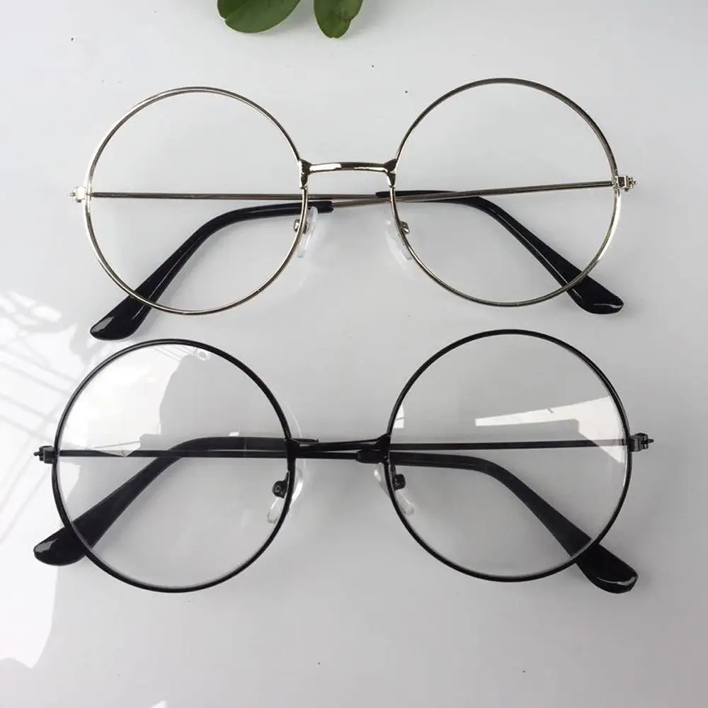 Большие очки большого размера в стиле ретро, круглые металлические очки с прозрачными линзами, очки в металлической оправе с прозрачными линзами, круглые очки унисекс