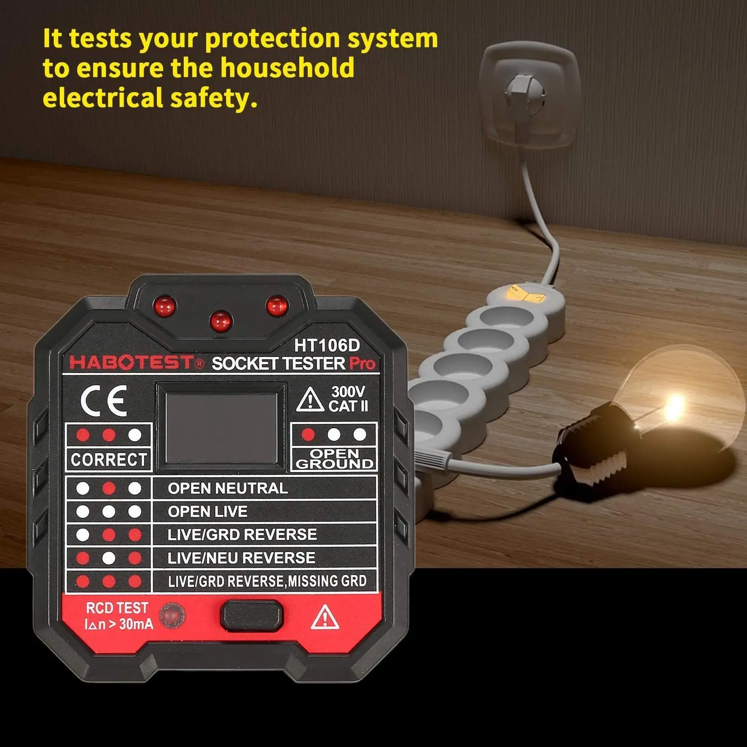 HT106 тестовый прибор для испытания на напряжение Детектор гнезда Великобритании ЕС заземление нулевой линии заглушка полярность проверка фазы