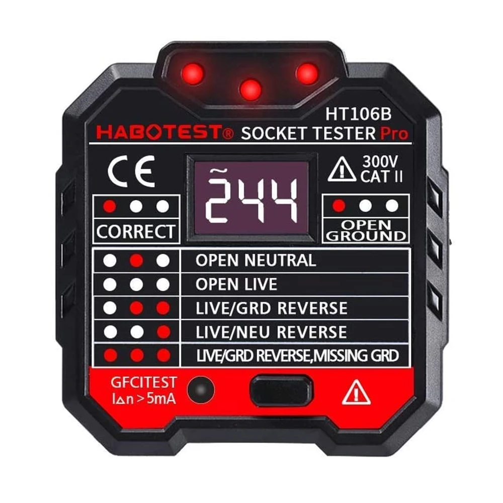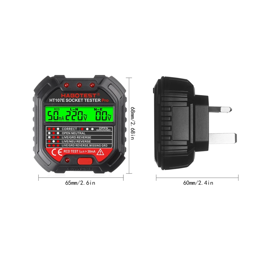 Расширенный HABO тест на гнездо может помочь вам проверить проводку дома и полярность подключения гнезда, он также может использоваться для тестирования утечки отключения. Это профессиональный тестер гнезд, который быстро определяет, является ли соединение провода гнезда правильным или нет. С функцией тестирования RCD/GFCI, это более практично и безопасно.Особенности:Портативный тестер электрических розеток --- Расширенный тестер розеток для быстрого обнаружения правильного или нет подключения к розетке. Компактный размер, легкий и удобный в использовании. С ЖК-дисплеем с подсветкой напряжения для тестирования напряжения.PLUG & PLAY --- разработан с помощью кнопки тестирования RCD/GFCI, один клик, чтобы узнать рабочее состояние протектора утечки. Идеально подходит для защиты вашей безопасности от риска поражения электрическим током.Яркий светодиодный дисплей --- светодиодный светильник на задней панели устройства. Красный светодиодный индикаторы может быть светильник четко даже в прямыми солнечными лучами светильник также использоваться в темное время суток, делает вас прочитать это быстро.6 моделей светодиодный светильник --- с 6 легко читаемыми индикаторами, чтобы указать состояние розетки, легко определить: правильный, открытый, открытый, нейтральный, живой/нейтральный, live/Ground Reverse, Live/Ground Reverse, отсутствует земля.Широкое применение-широко используется для тестирования электрического обслуживания, тестирования офисных розеток, тестирования силовых полосок и тестирования настенных розеток в школе, лаборатории, фабрике и других социальных областях. Приемка и проверка безопасности дома, это экономит вам много времени при тестировании проблем с розетками.Спецификация:Название бренда: HABOTESTЦвет: черныйМодель: HT107B (США)/HT107D (ЕС)/HT107E (Великобритания) (опционально)Материал: Огнестойкий АБС-пластикРабочее напряжение: 90 ~ 250 ВФазовое напряжение: 90 ~ 250 ВНапряжение утечки: 0 ~ 99 вТочность: ± (2.0% + 2)Тест на Код: >30 мА (штепсельная вилка ЕС/Великобритании)Рабочее напряжение cd: 220 В ± 20 вGFCI тест: >5 мА (штепсельная вилка США)Рабочее напряжение GFCI: 110 В ± 20 вРабочая среда: 0 ℃ ~ 40 ℃, 20% ~ 75% RHСреда хранения: -10 ℃ ~ 50 ℃, 20% ~ 80% RHРазмер изделия: 68*65*60 мм/2,7*2,6 * 2.4inТовар Вес: 74g/2,6 ozУпаковочный лист:1 * тестер электрической розеткиОсобенности:Портативный тестер электрических розеток --- Расширенный тестер розеток для быстрого обнаружения правильного или нет подключения к розетке. Компактный размер, легкий и удобный в использовании. С ЖК-дисплеем с подсветкой напряжения для тестирования напряжения.PLUG & PLAY --- разработан с помощью кнопки тестирования RCD/GFCI, один клик, чтобы узнать рабочее состояние протектора утечки. Идеально подходит для защиты вашей безопасности от риска поражения электрическим током.Яркий светодиодный дисплей --- светодиодный светильник на задней панели устройства. Красный светодиодный индикаторы может быть светильник четко даже в прямыми солнечными лучами светильник также использоваться в темное время суток, делает вас прочитать это быстро.6 моделей светодиодный светильник --- с 6 легко читаемыми индикаторами, чтобы указать состояние розетки, легко определить: правильный, открытый, открытый, нейтральный, живой/нейтральный, live/Ground Reverse, Live/Ground Reverse, отсутствует земля.Широкое применение-широко используется для тестирования электрического обслужива