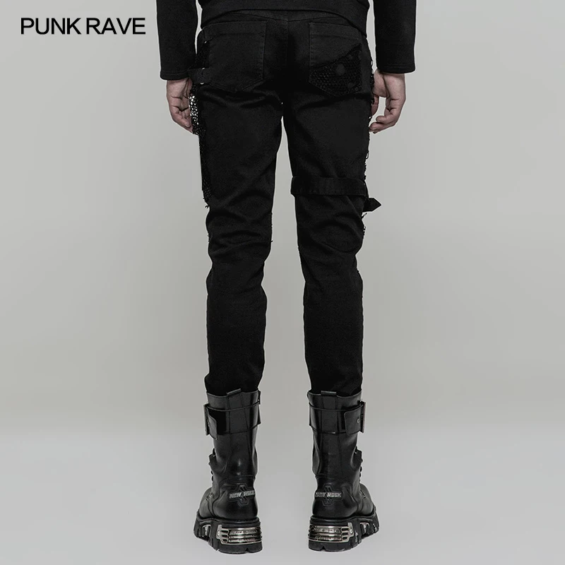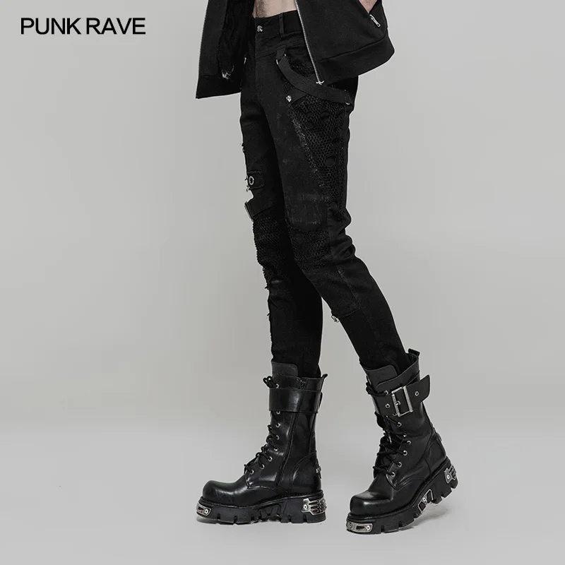 Мужские облегающие джинсовые брюки в стиле панк-рейва, модные повседневные винтажные брюки в стиле рок с заклепками в виде призрачной головы