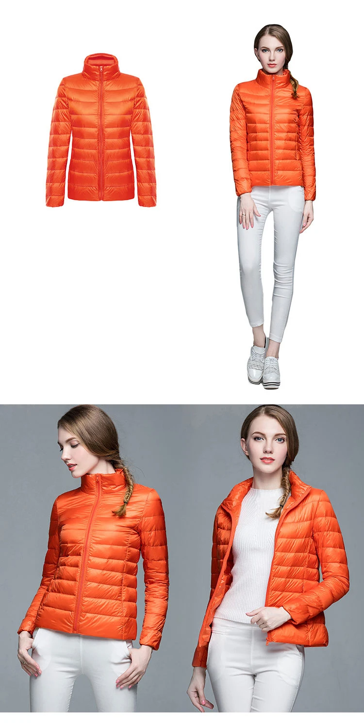 Женский ульсветильник пуховик, куртка на белом утином пуху с длинным рукавом, теплое пальто, парка, Женская однотонная портативная верхняя одежда, осень-зима