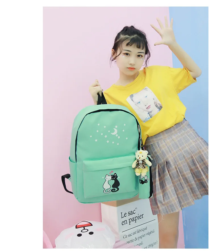 M060 новый милый рюкзак с принтом звезды кота для подростка школьна...