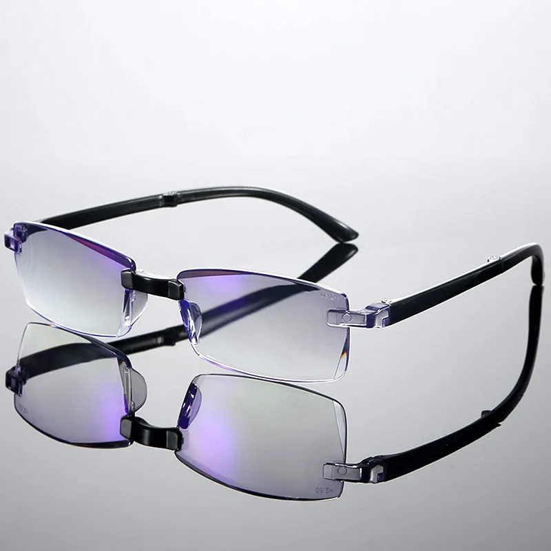 Портативный складные очки для чтения унисекс Ультра светильник ясный анти-синий светильник пресбиопические очки без оправы квадратной формы с Чехол