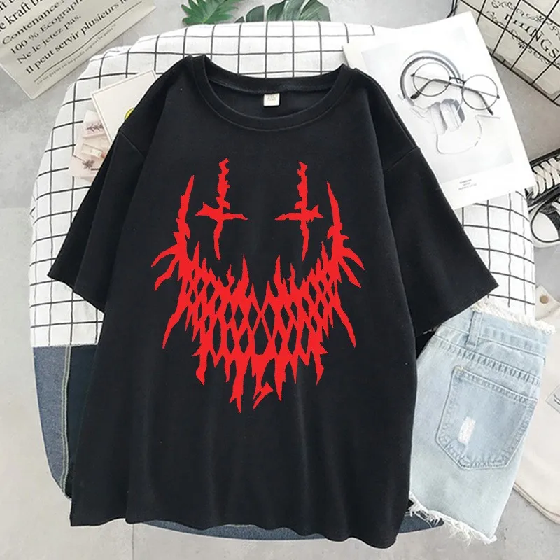 Женская футболка с круглым вырезом, готическая Черная футболка большого размера в стиле хип-хоп, Топ в стиле Харадзюку, 2019