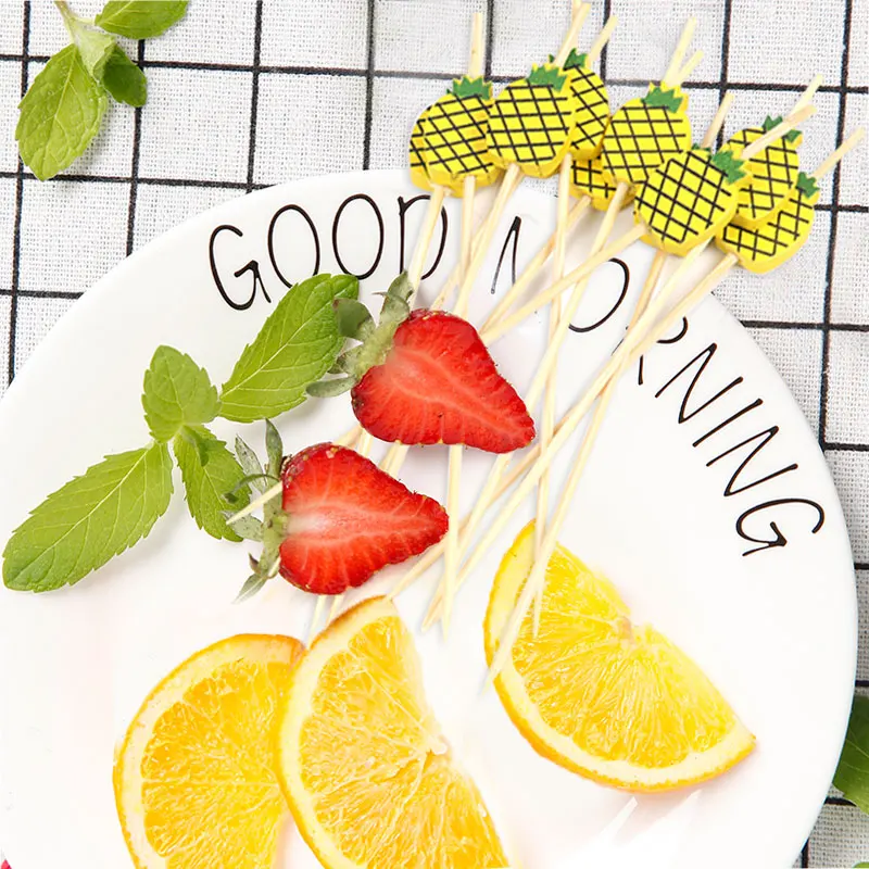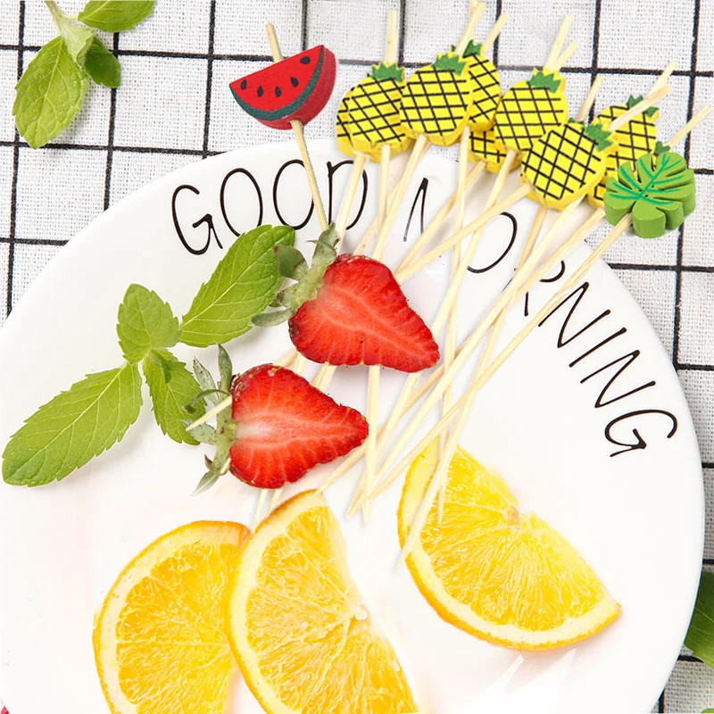100 шт. Еда вилки для фруктов коктейль одноразовые бамбуковые выбирает ручной работы зубочистки для пикника Фламинго вечерние поставки тропический украшение