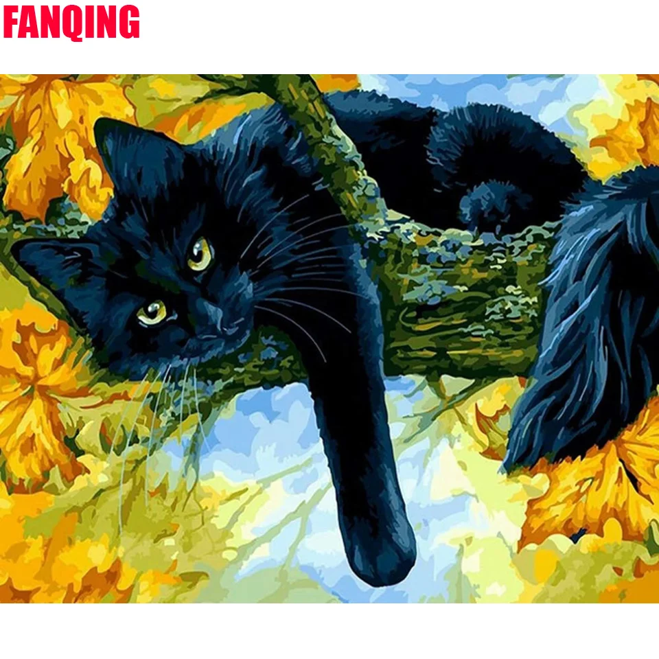 5D DIY Алмазная картина Кошка на дереве вышивка крестиком животное полный комплект картина Стразы Мозаика Декор для дома