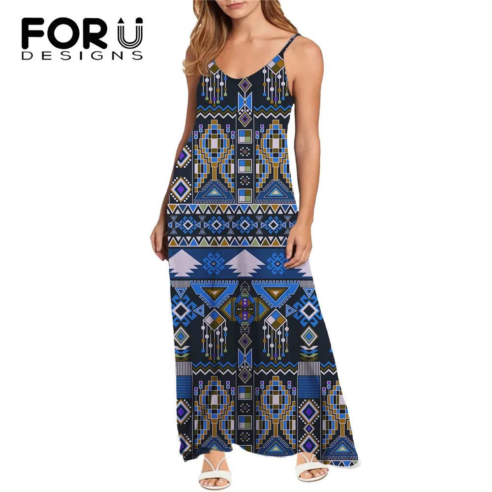FORUDESIGNS Африканское индийское Ацтекское ретро платье без рукавов на бретельках длинное женское сексуальное вечернее платье с глубоким V-образным вырезом сарафан с открытой спиной
