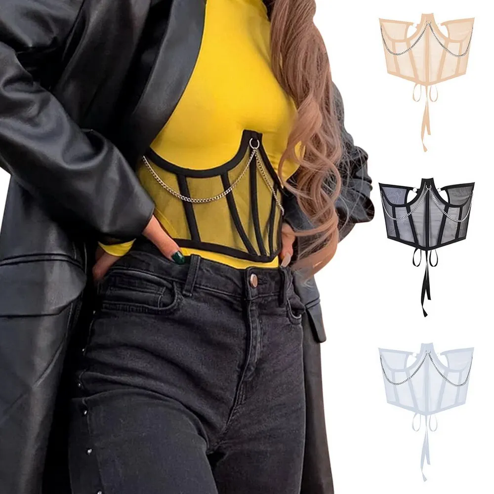 Женский корсет для груди Harajuku, черный, бюстье из сетчатой ткани