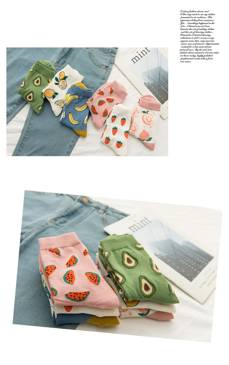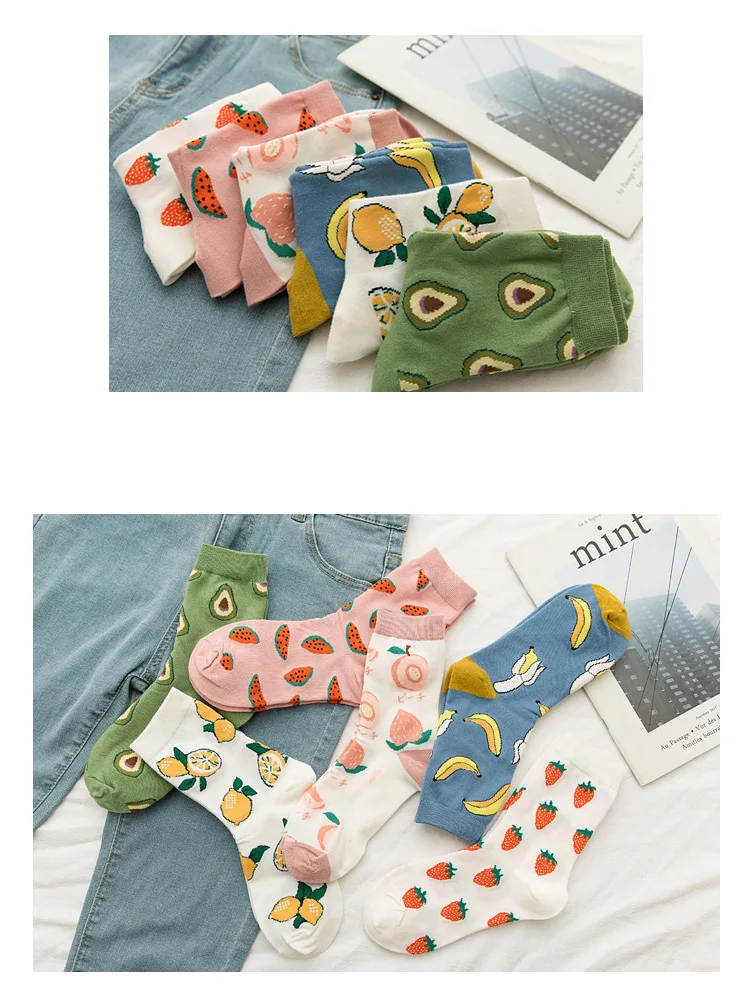 Кавайные забавные женские носки с фруктами в стиле Харадзюку Разноц...