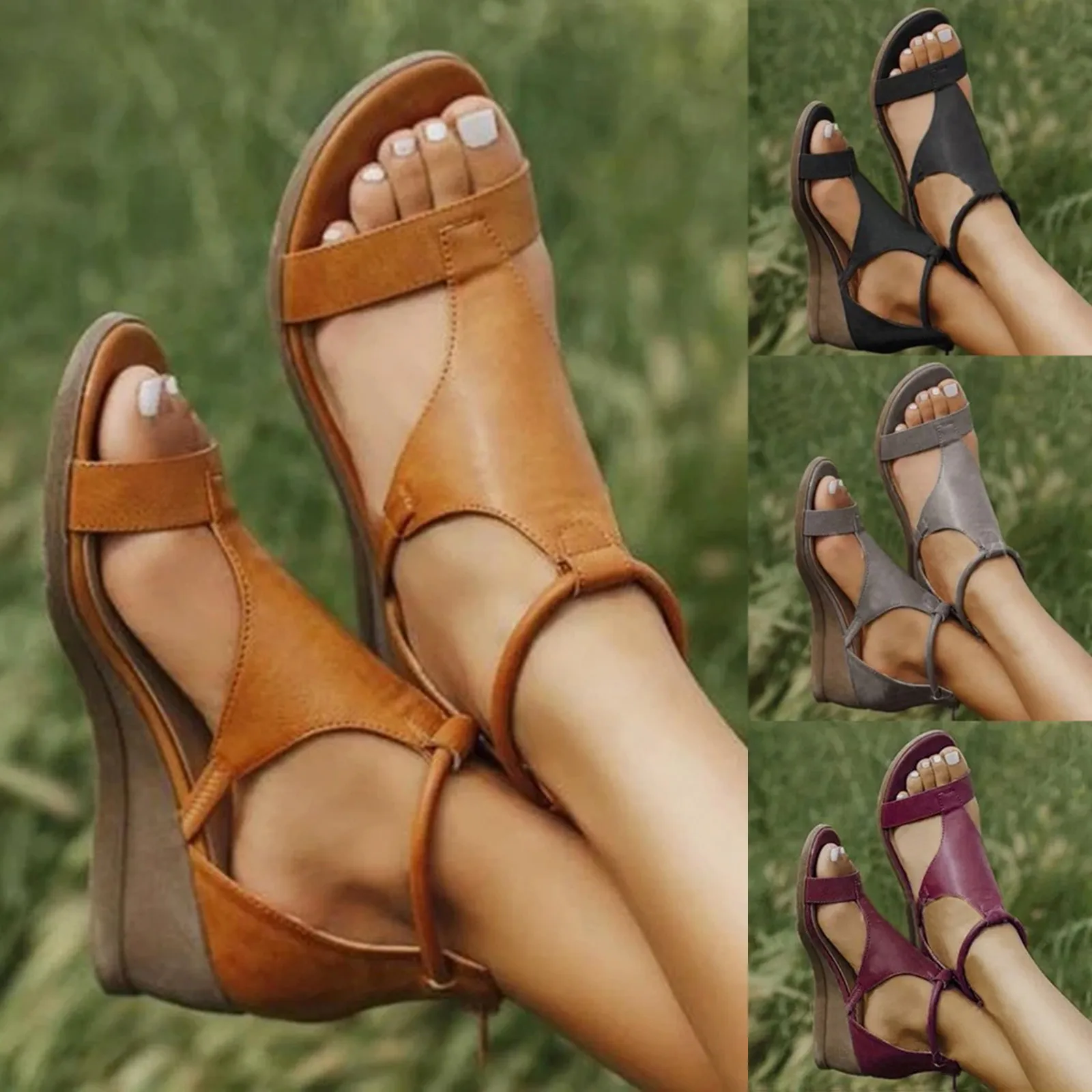 Сандалии женские ортопедические на платформе, винтажные Босоножки с открытым носком, Нескользящая дышащая кожа, Премиум качество, повседневная обувь, лето 2021