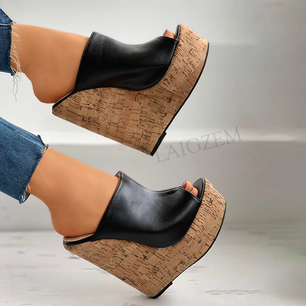 SEIIHEM/женские летние туфли на танкетке, с открытым носком, на высоком каблуке; Женская обувь из искусственной кожи черного цвета; Женская обувь; Большие размеры 39, 44, 48, 50, 52