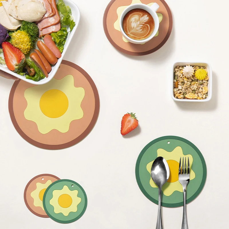 Забавное яйцо, Круглый термостойкий силиконовый коврик для стола, подставка под чашку для напитков, скользящий изоляционный коврик, подложка, милая кухонная утварь