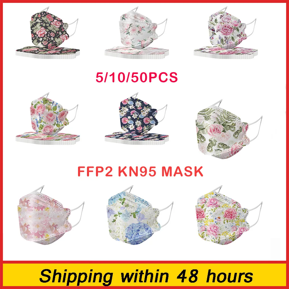 Маска FFP2MASK с цветочным принтом, 1050 шт., маска KN95 для рыбы, многоразовая маска для лица с фильтром, Пылезащитная маска для взрослых KN95MASK FFP2 Maska CE FPP2