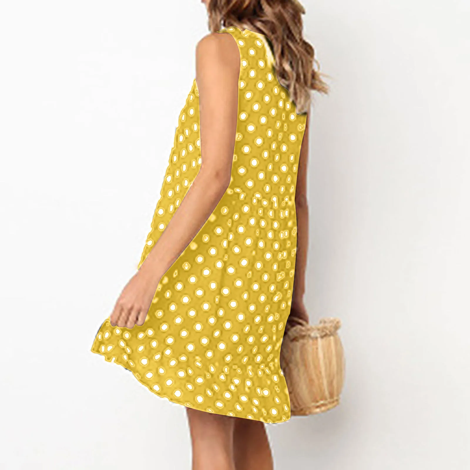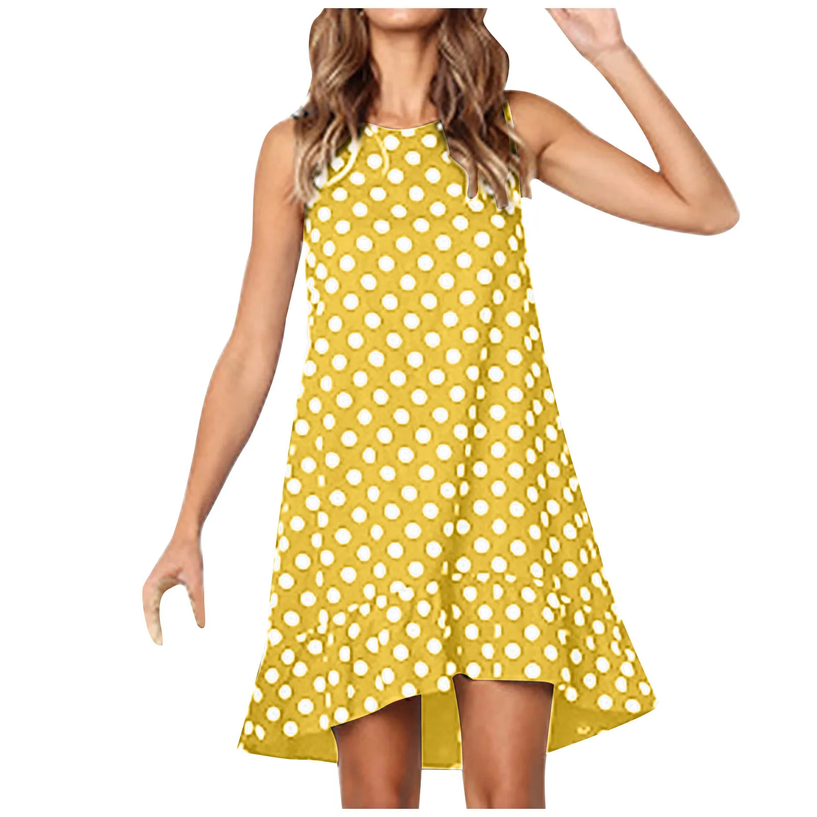 Женское платье в горошек, повседневное свободное платье без рукавов, с круглым вырезом и карманами, лето 2021