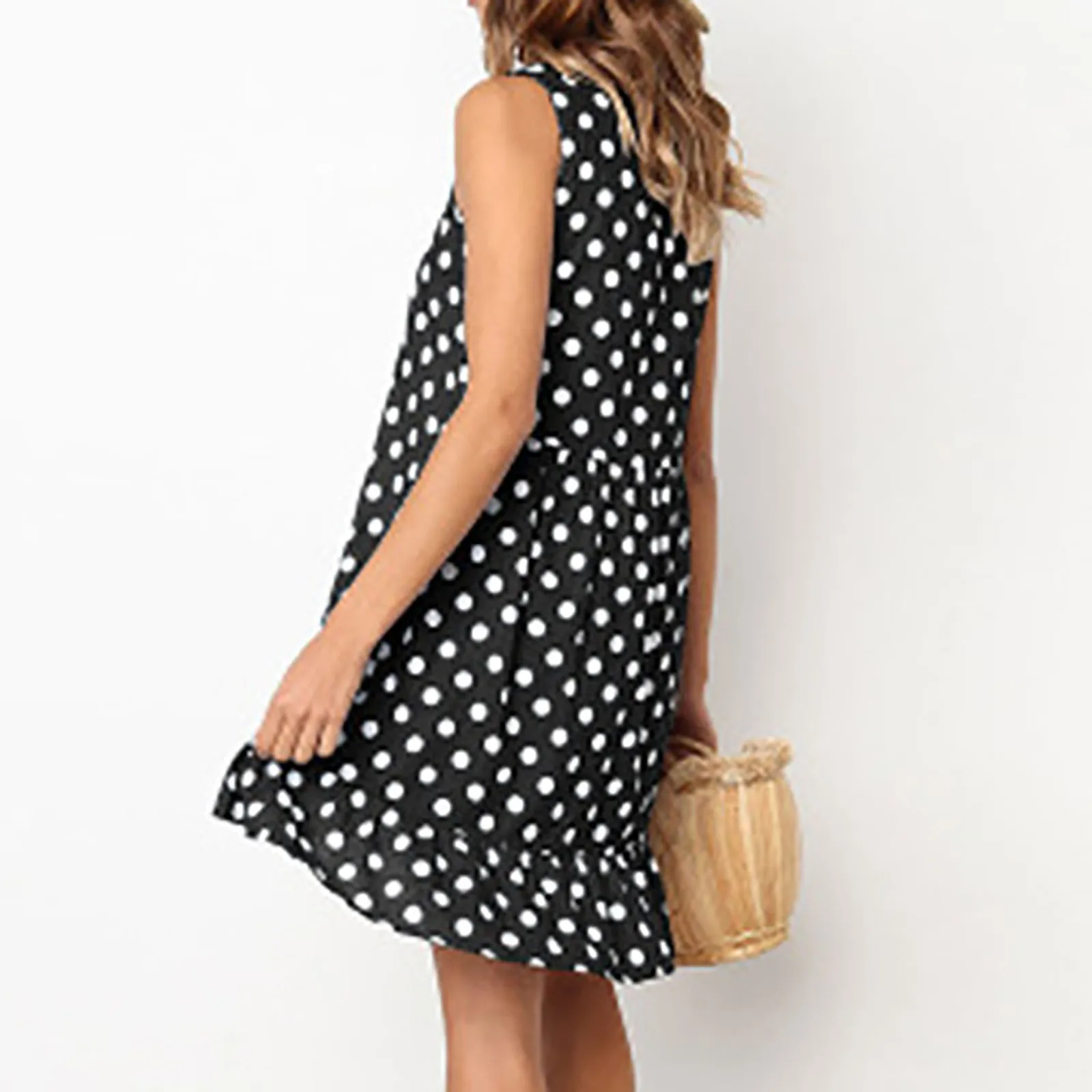 Женское летнее Свободное платье в горошек без рукавов с круглым вырезом и карманами