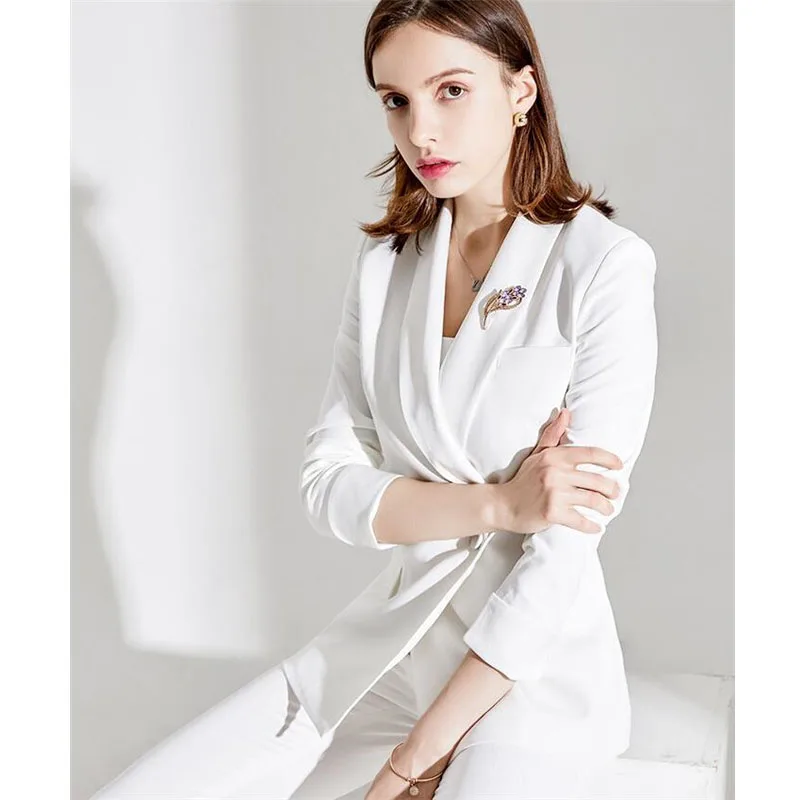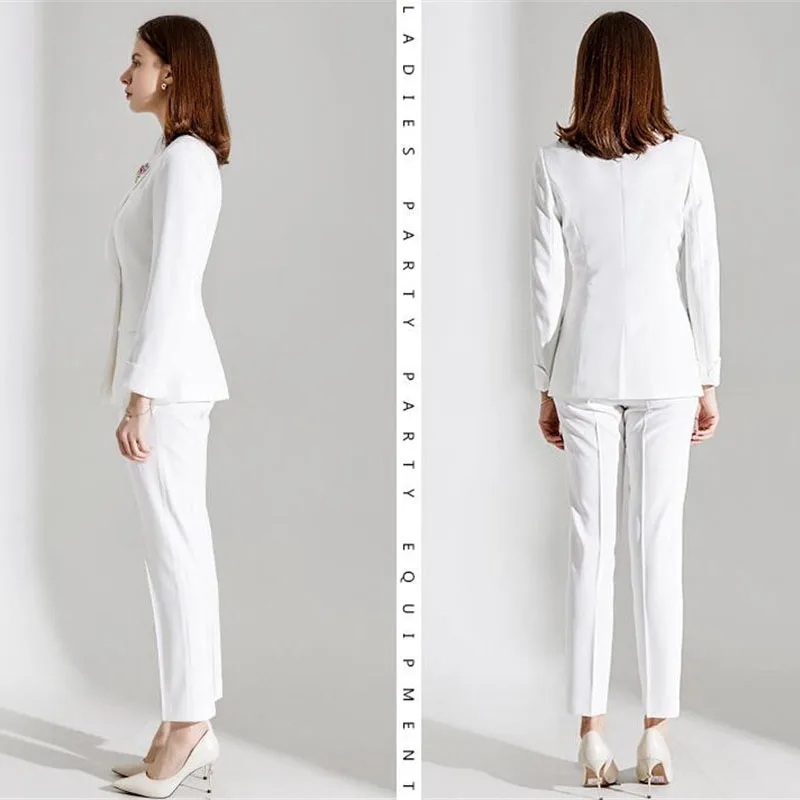 Женские Брючные костюмы, белые женские костюмы, женский брючный костюм на заказ, блейзер + брюки для работы, брючный костюм для свадебной вечеринки