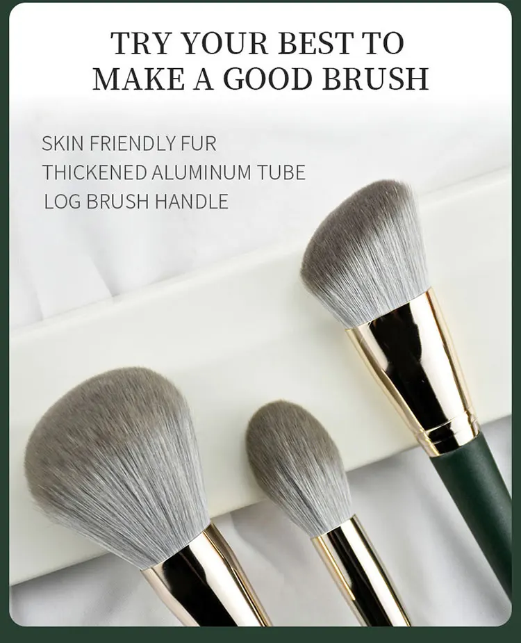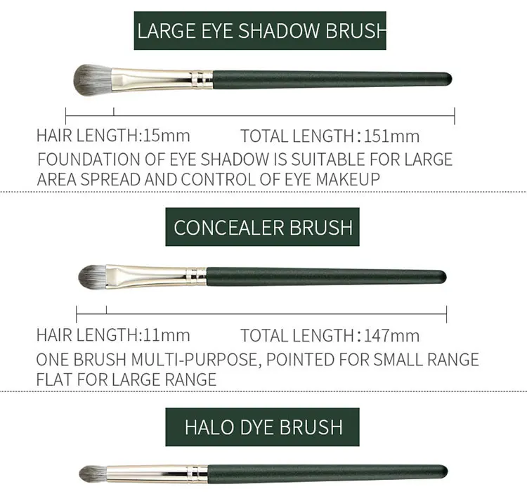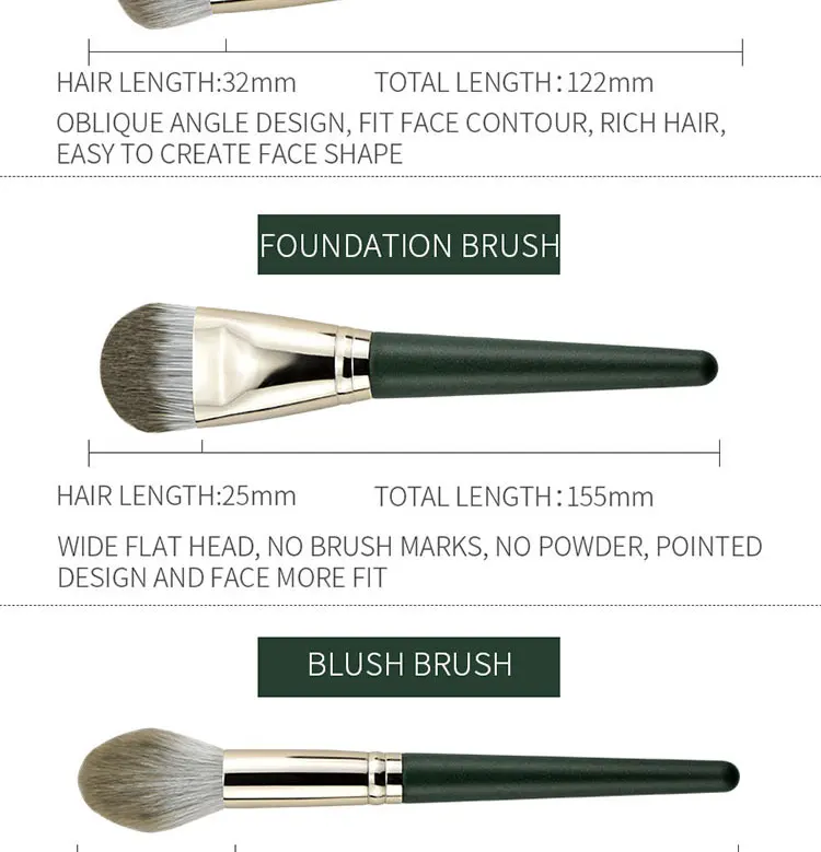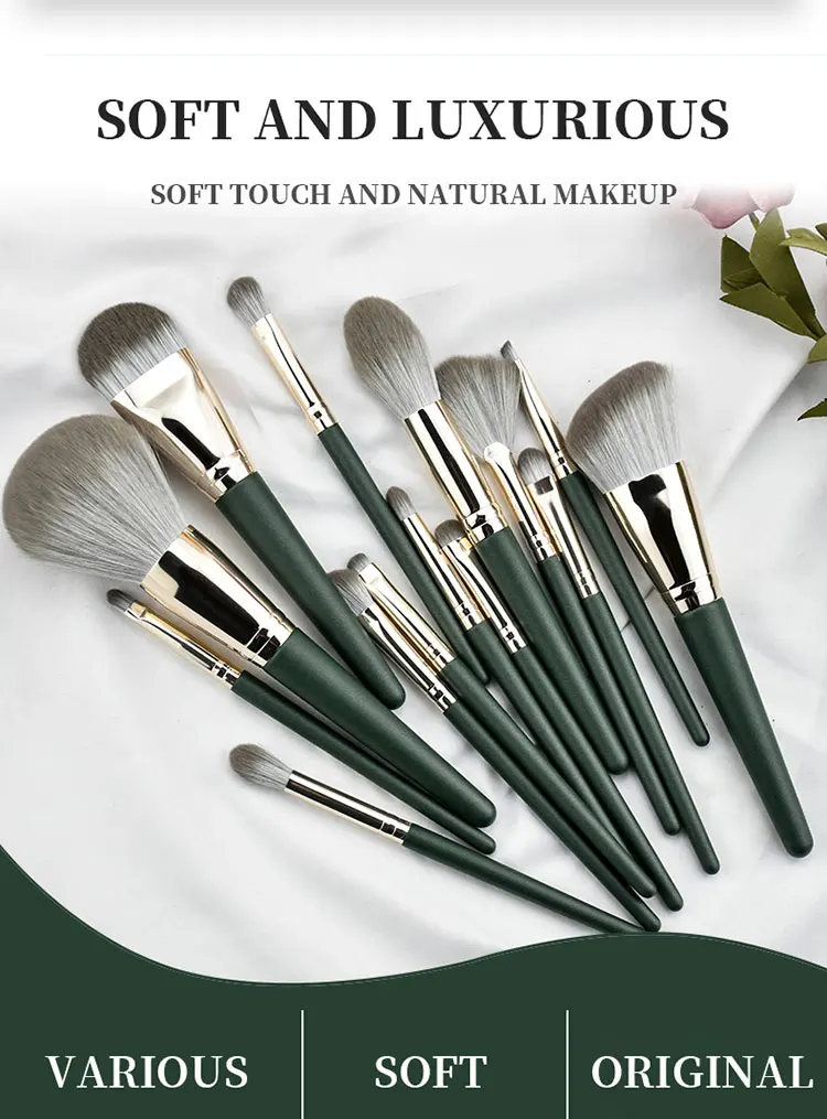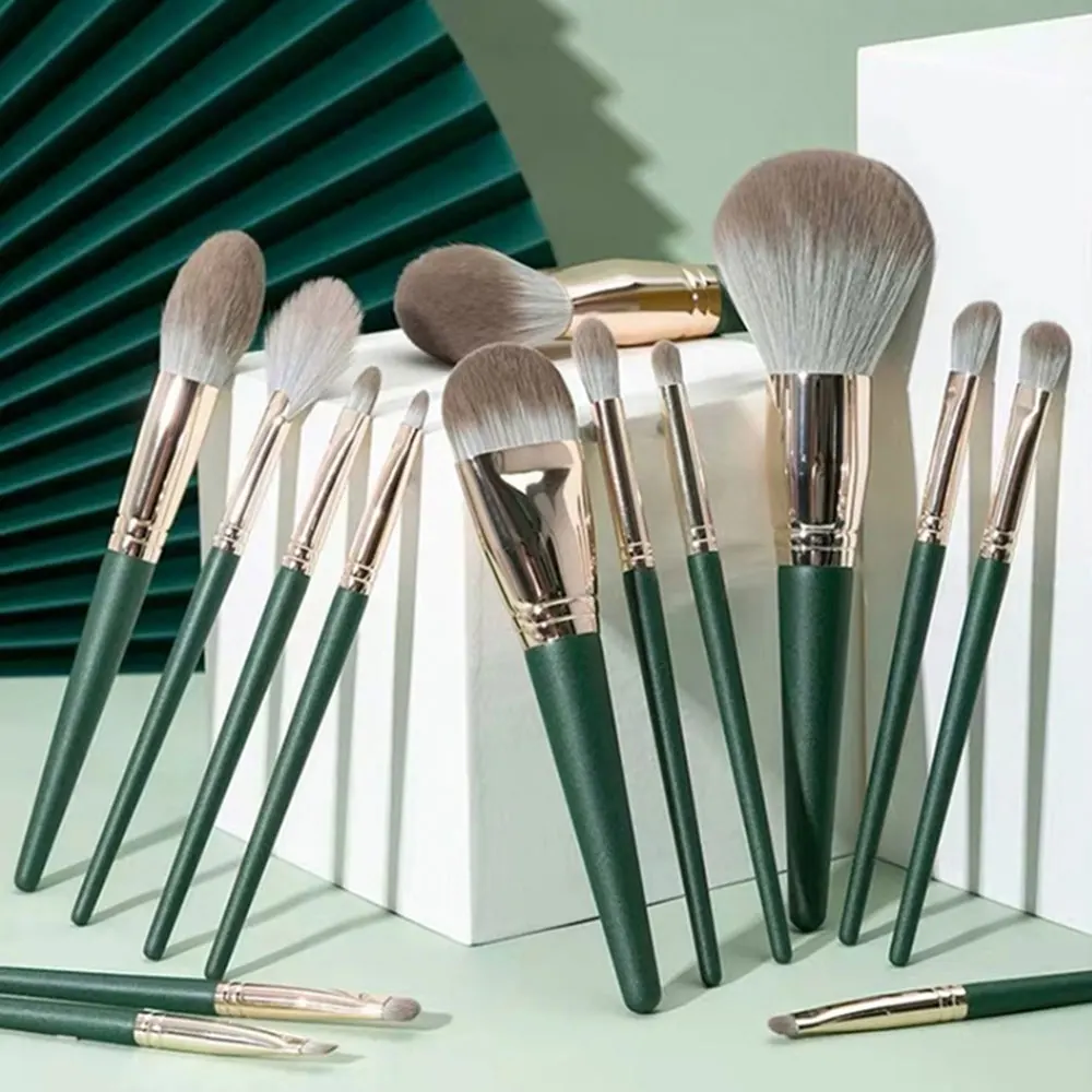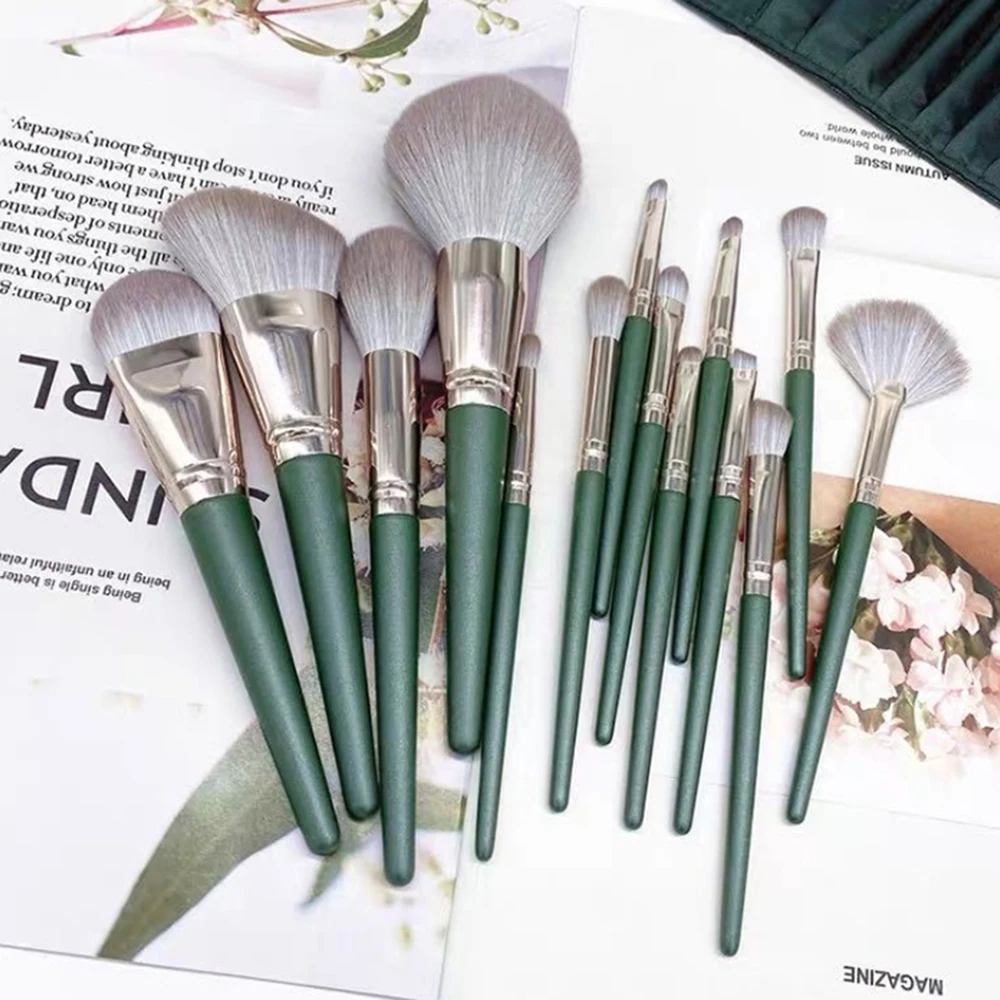 Набор кистей для макияжа, 14 шт., зеленый, для основы, пудры, теней, бровей, профессиональный макияж