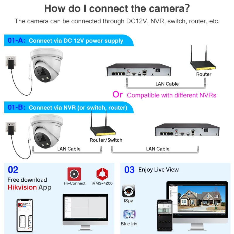 (Можно подключить к различным брендам сетевых камер, а брендовые камеры Hikvision можно подключать и играть)