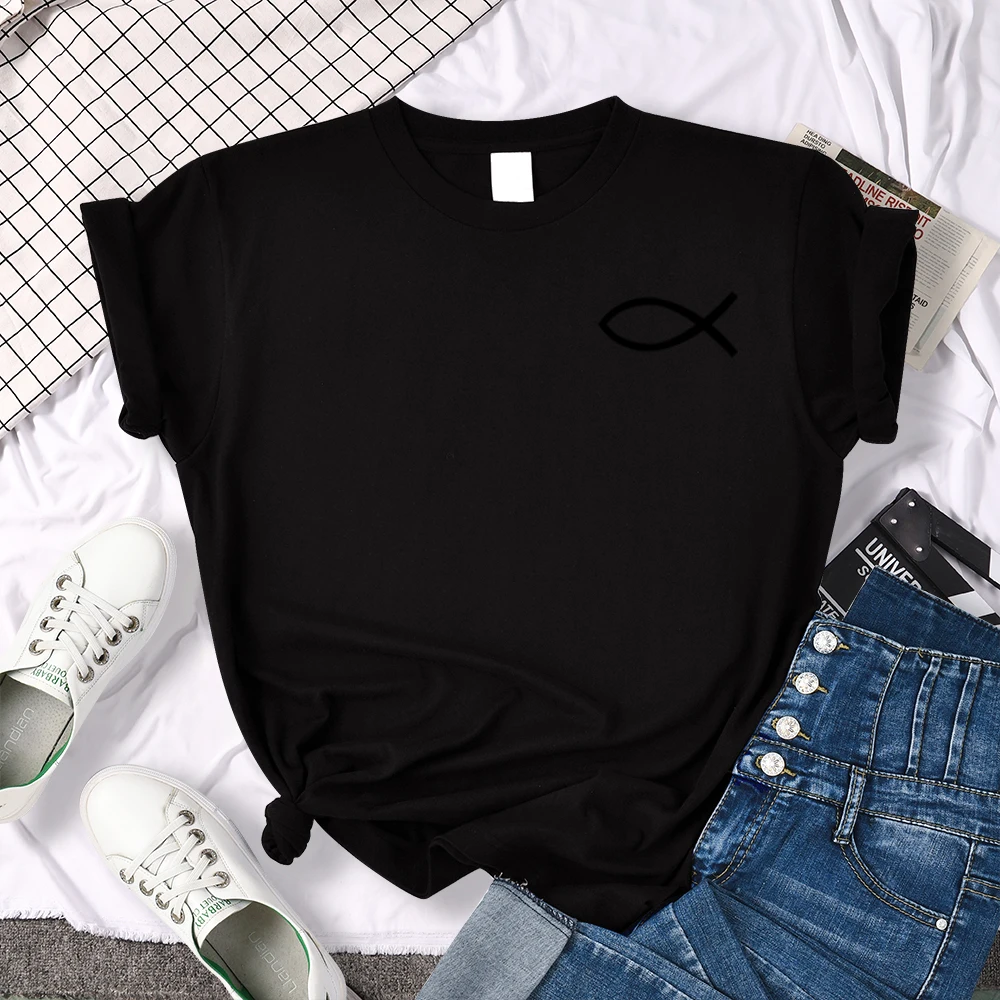Креативная женская футболка с принтом рыбка с однотактным узором, домашняя мягкая футболка, простая Летняя женская футболка с коротким рукавом и круглым вырезом в стиле аниме