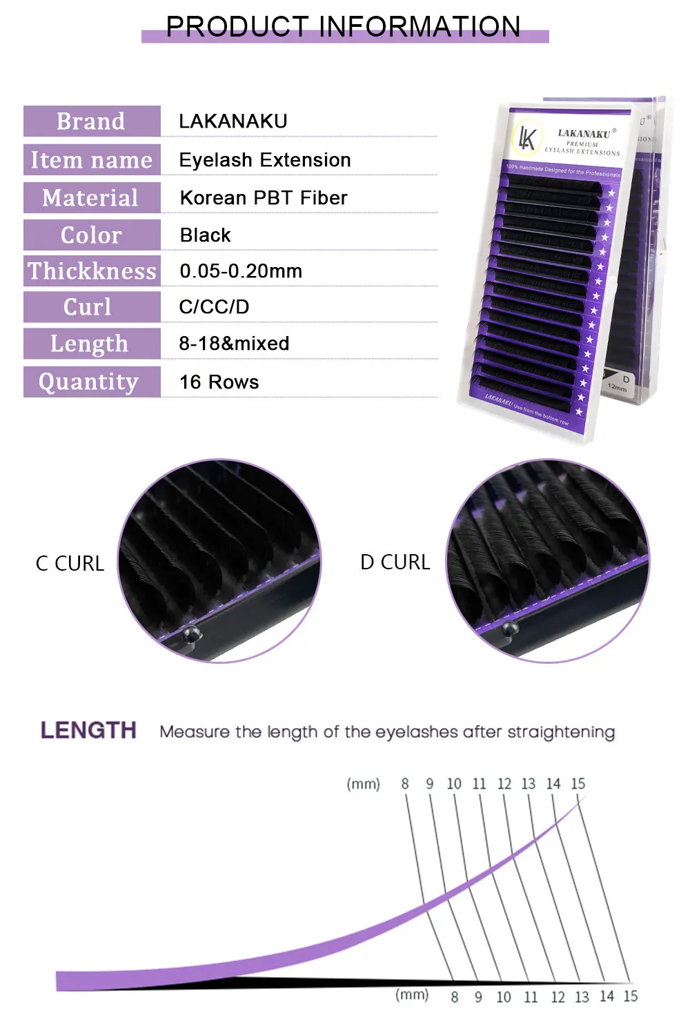 Ресницы человека Расширение Накладные ресницы LAKANAKU для наращивания