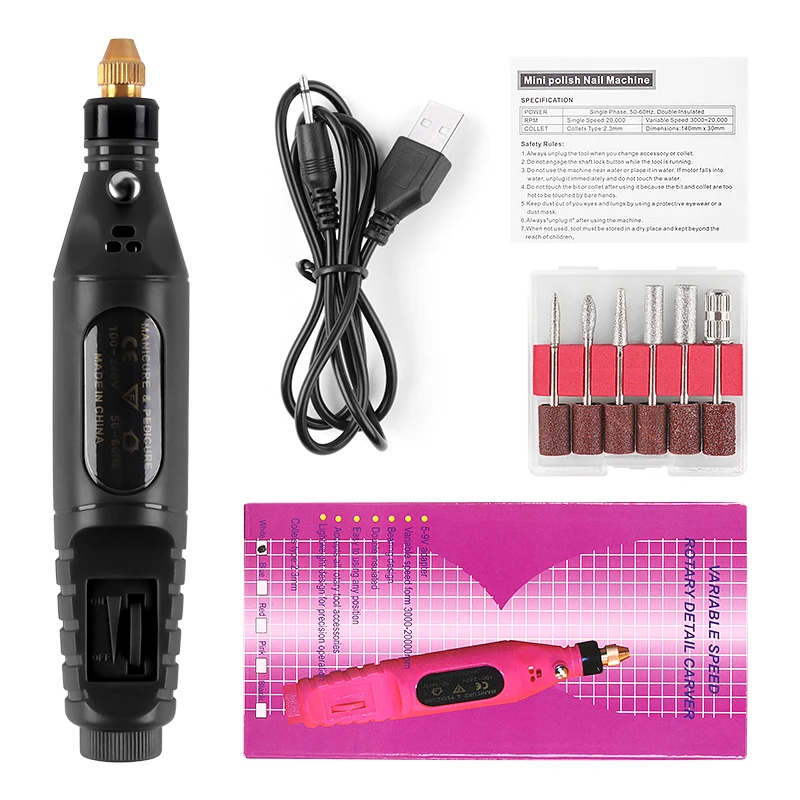 Фрезер Электрический Профессиональный для маникюра и нейл-арта, зарядка от USB, пилка для полирования ногтей пилка, 1 набор