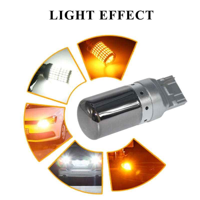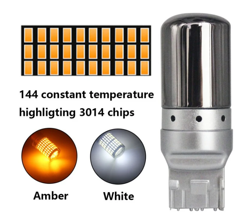 S25 T20 7440 W21W Скрытая светодиодный шарик хром Янтарный 144 smd ...