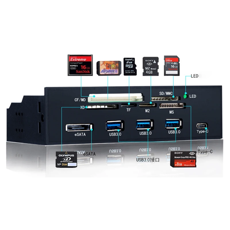 Мульти-Порты и разъёмы ед. Панель внутренний USB3.0 eSATA Тип-C устройство для чтения карт SD TF концентратор USB3.0 кард-ридер передней шасси Панель