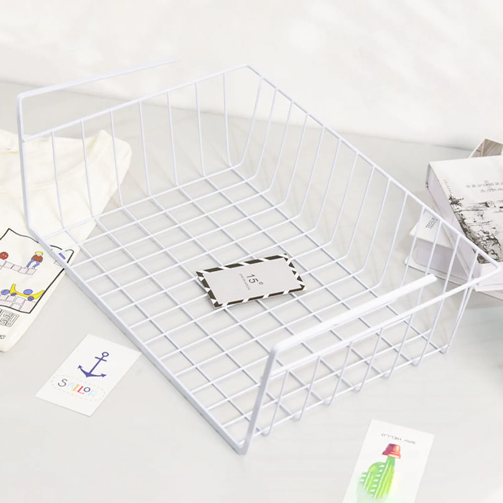 Точки пули:1. Отличный материал: металл (железо), гладкие углы, не легко отшелушиваются, изысканное мастерство, высокая несущая способность.2. Нет необходимости устанавливать: под подвесным дизайном, готов к использованию, не нужно устанавливать.3. Удобное хранение: дизайн с открытым носком, большая емкость, расположение сетки, водонепроницаемость, более удобное хранение.4. Многоразовое Использование: это хранилище может использоваться в шкафу, кухонном шкафу, столе и книжной полке и т. д.5, более широкий выбор: большого размера (около 38*23*14,5 cm/14,96*9,06 * 5.71in), маленький размер (около 30*23*14,5 cm/11,81*9,06 * 5.71in), разные цвета. Если у вас есть какие-либо требования, пожалуйста, свяжитесь с нами.Спецификация:Наименование: подвесная корзинаМатериал: металлЦвет: белыйТип: большой и маленькийРазмер: большой размер (около 38*23*14,5 см/14,96*9,06 * 5.71in), маленький размер (около 30*23*14,5 см/11,81*9,06 * 5.71in) Упаковочный лист:1 * подвесная корзинаПримечание:Из-за световых эффектов и углов съемки, в продукте есть разница в цвете, пожалуйста, поймите.