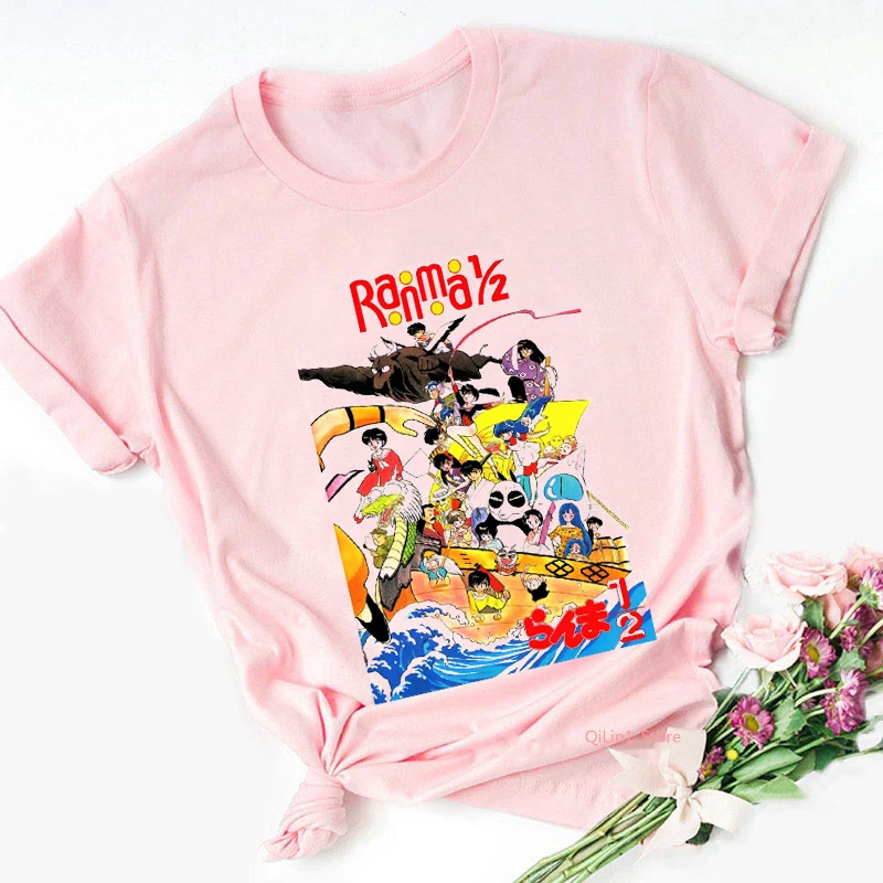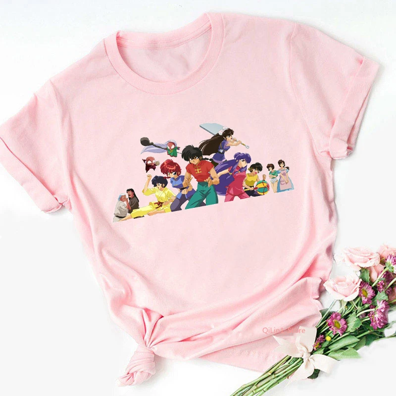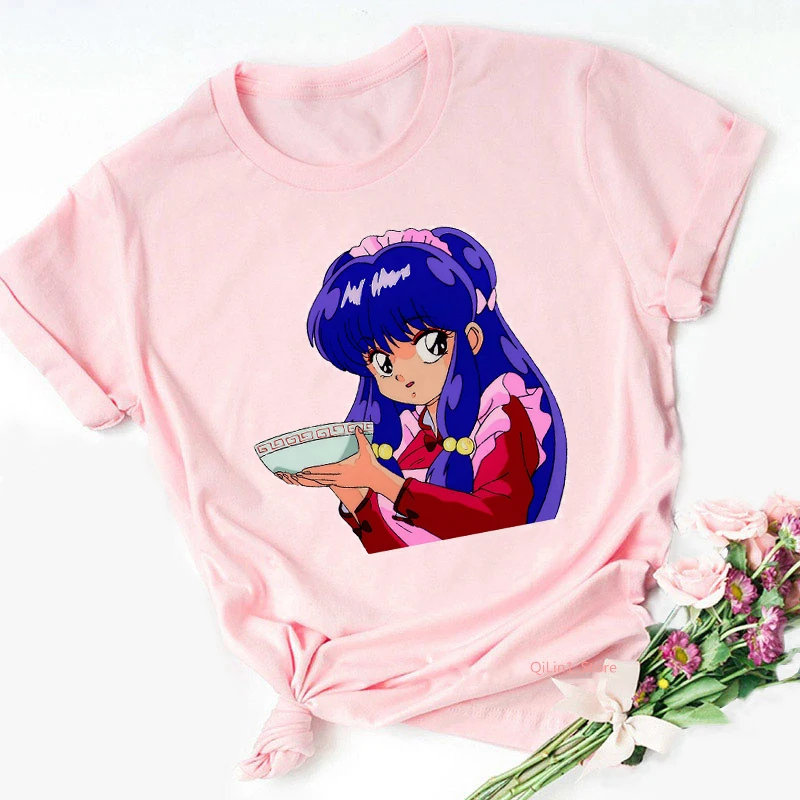 Футболка с японским аниме Ranma 12 Urusei yatсура женские футболки Rumiko Takahashi розовая футболка женский летний топ Женская футболка