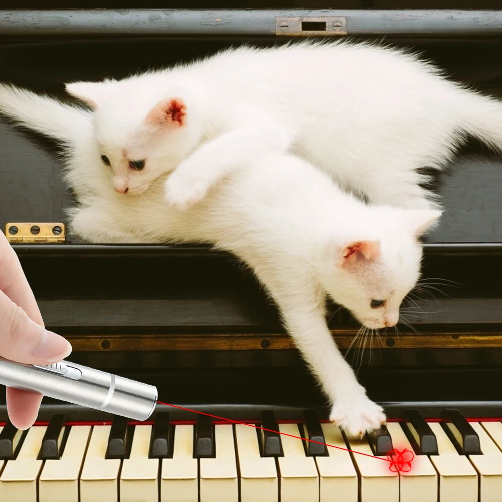 Многофункциональная кошка собака лазерная ручка игрушка. 3 функции освещения: красный свет, светодиодный фонарик и УФ-свет. 5 узоров красного света: Красная точка/бабочка/мышь/Улыбка/звезда, более привлекательная для домашних животных кошек.