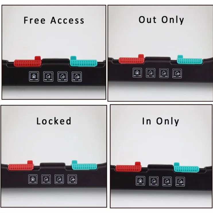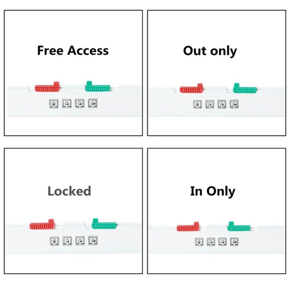 1. Поверните красный и зеленый переключатели на обе стороны, питомца предотвращает от входа или выхода из дома.