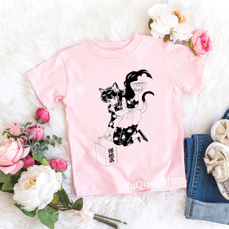 Розовая футболка в стиле Харадзюку, одежда для маленьких девочек, футболка Urusei yatсура Ранма 12, забавные детские Мультяшные футболки с рисунком из аниме для детей, топы