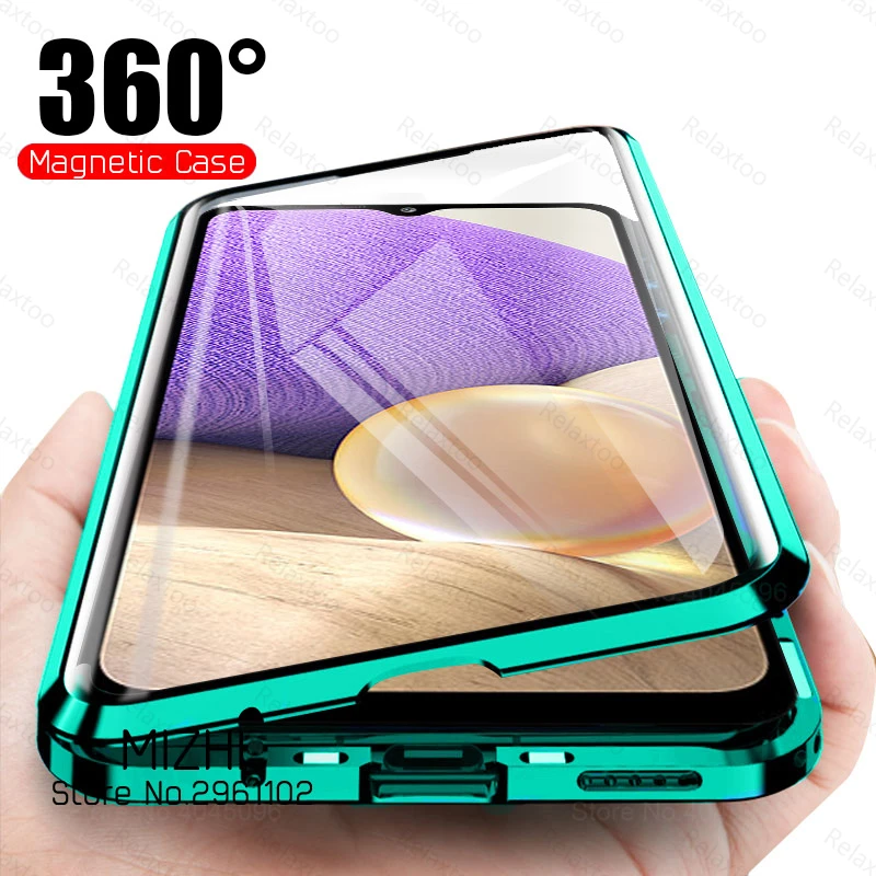 SamsungA32 5G чехол 360 Магнитная Адсорбция металлический корпус для Samsung Galaxy A32 A 32 5G 32A SM-A326F 6,5 ''двухсторонняя стеклянная крышка