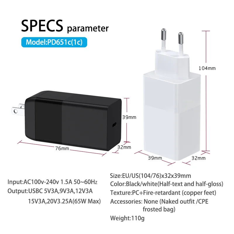 Адаптер питания USB-CВход: AC100-240V 50/60Hz 1.5A (макс)Выход: (макс. PD65W)USB-C: 5 В = 3A,9 В = 3A,12 В = 3A,15 В = 3A,20 В = 3.2A(65 Вт)