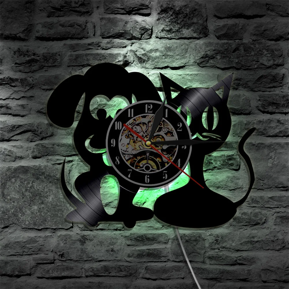 Ветеринарные настенные часы для домашних животных, кошек, собак, животных, виниловая пластина, настенные часы, современный дизайн, домашний декор, украшение для гостиной, подарок