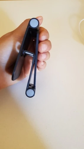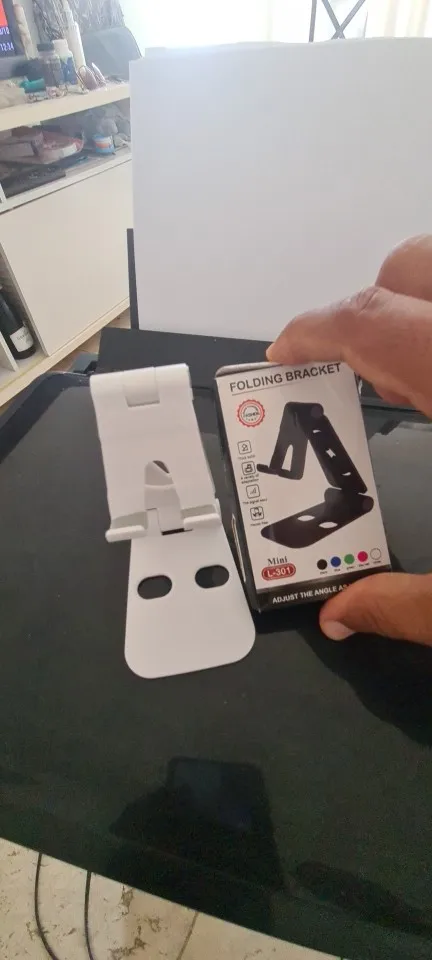 Модель mini L - 301. Фотографии ad искажают соотношение размеров. Немного наклоняйтесь, чтобы быть более легким для просмотра экрана, он не может выдержать вес телефона стоя и поворачивается обратно (Galaxy S10). Сильная сторона более импортируется без практичного применения.