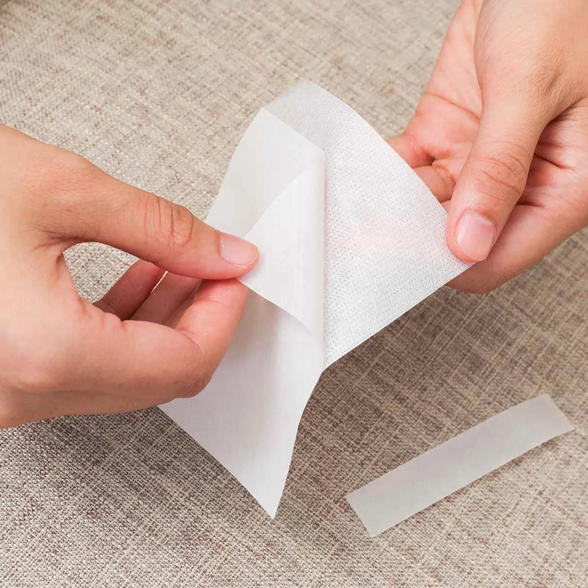 2. Возьмите один клейкий лист и Медленно снимите бумагу.