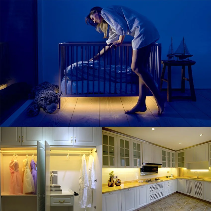 Светодиодный ночник с датчиком движения, 1 м, 2 м, 3 м, 4 м, 5 м, светодиодный водонепроницаемый PIR/светильник, ночной Светильник для шкафа, коридора, 12 В, адаптер питания