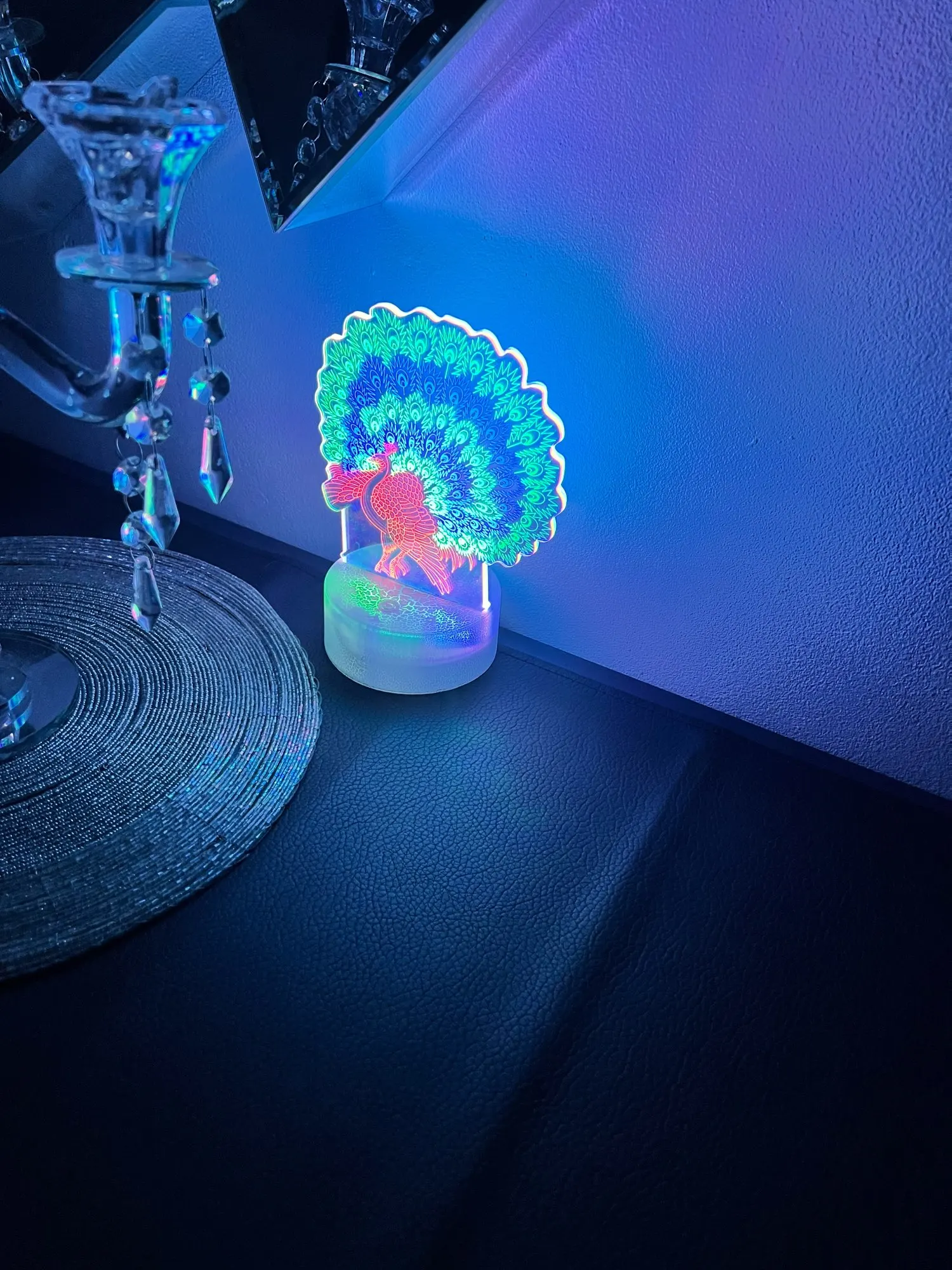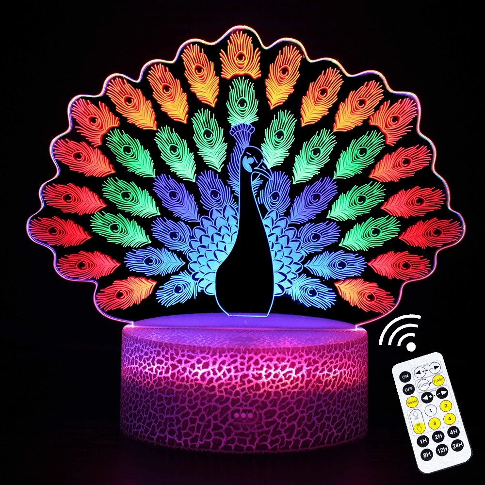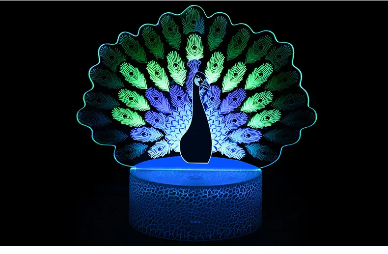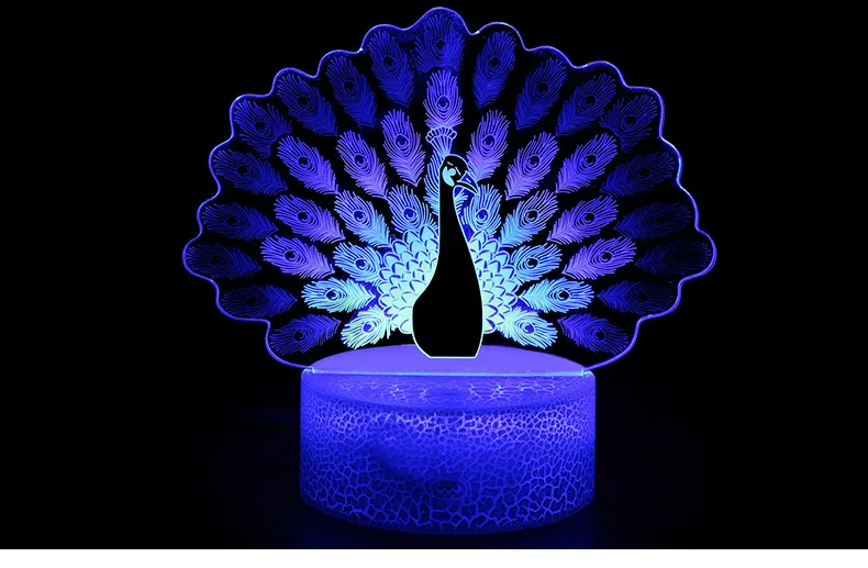 Ночники с 3D зрением, павлин, RGB-светодиод, меняющий цвет, сенсорный пульт дистанционного управления, креативный подарок, настольная лампа, украшение для дома, спальни