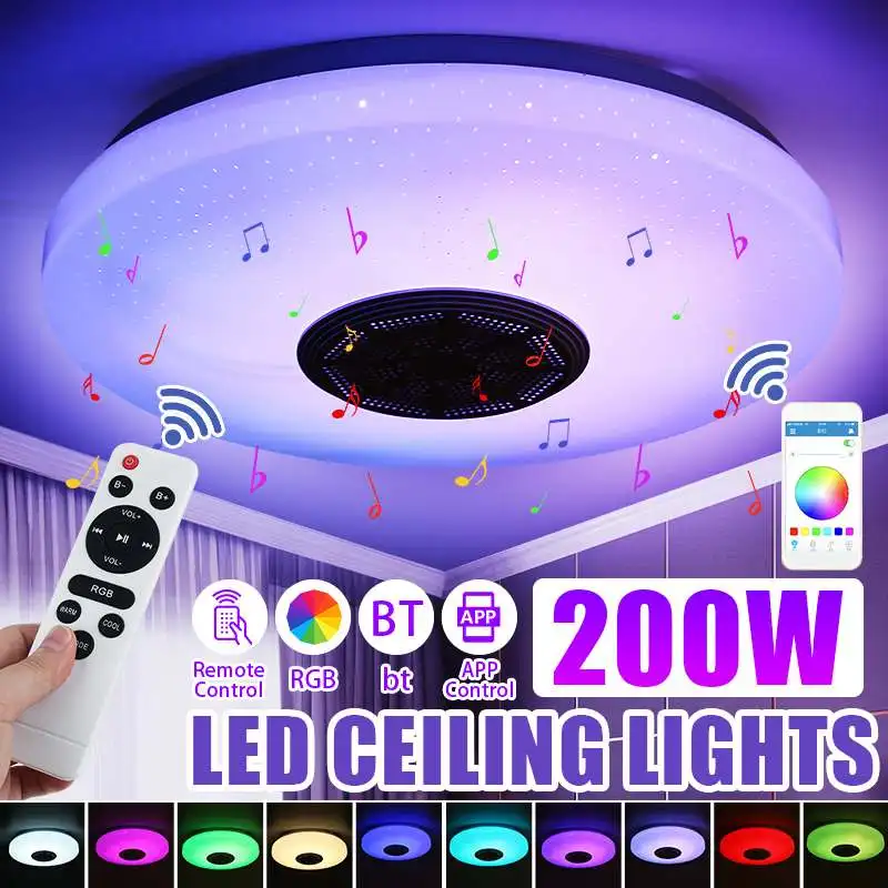 Светодиодный потолочный светильник, 200 Вт, 220 В, RGB, дистанционное управление через приложение, bluetooth-динамик, музыкальный светильник, умный потолочный светильник для спальни