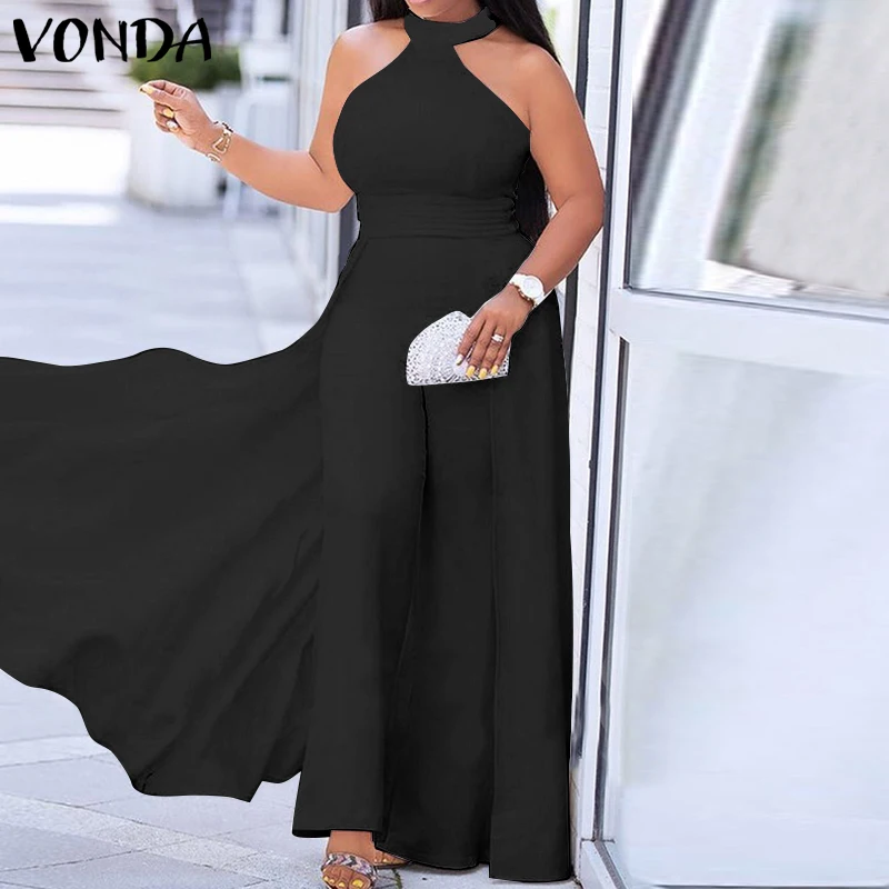 Комбинезон VONDA женский с широкими штанинами, длинные брюки палаццо, однотонные брюки без рукавов, с лямкой через шею