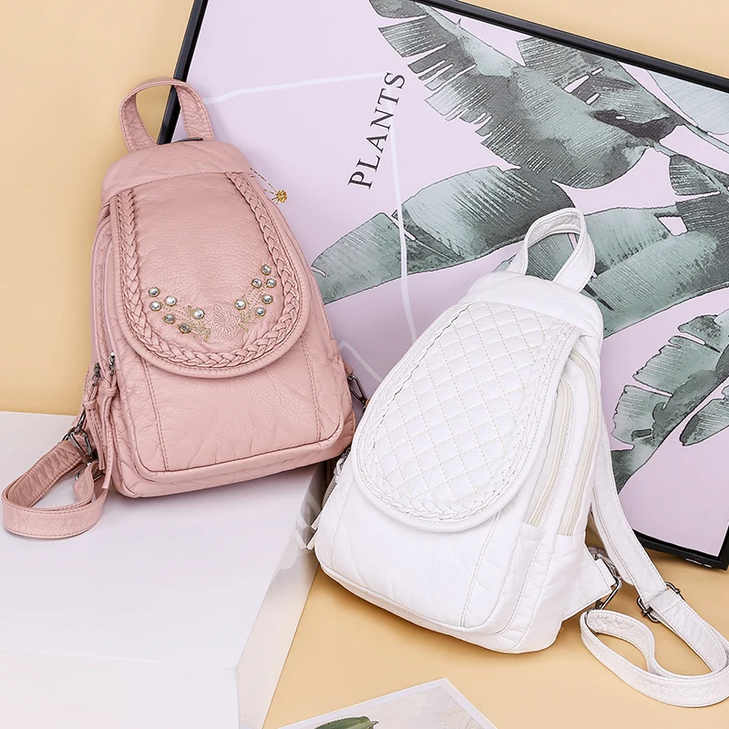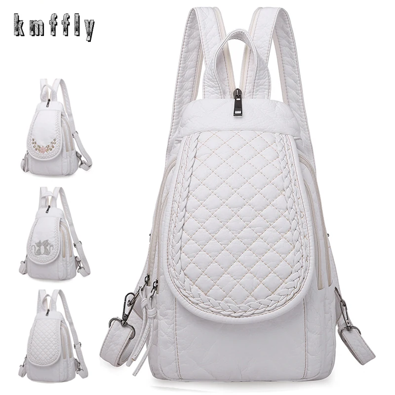Рюкзак женский из мягкой кожи, белый, для путешествий