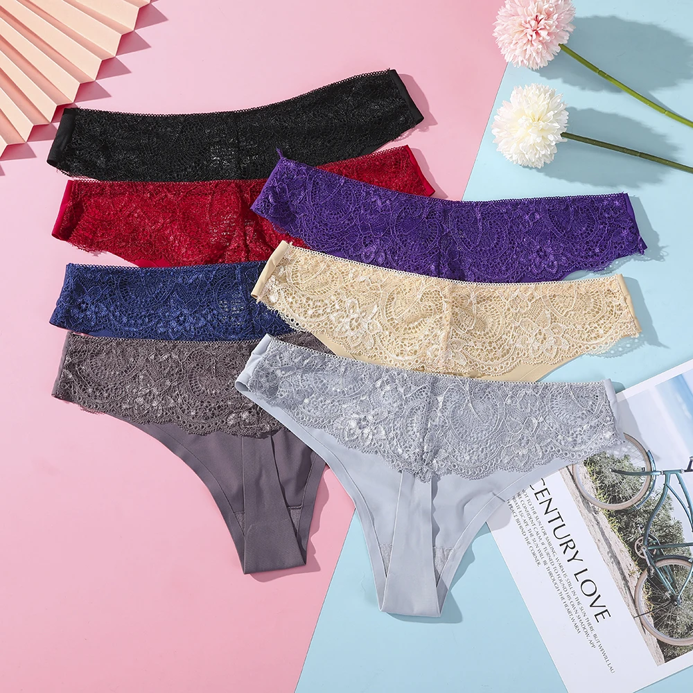 Женские сексуальные кружевные трусики 2021, брифы с заниженной тали...