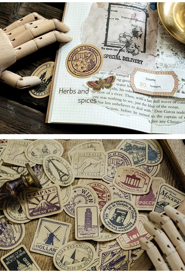 46 шт Путешествия под старину Стикеры s комплект Винтаж стран штамп...
